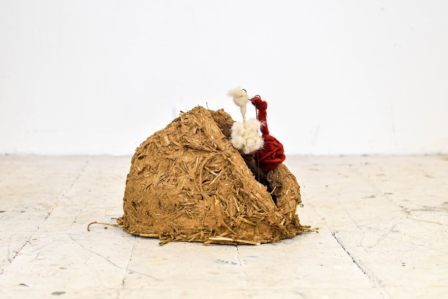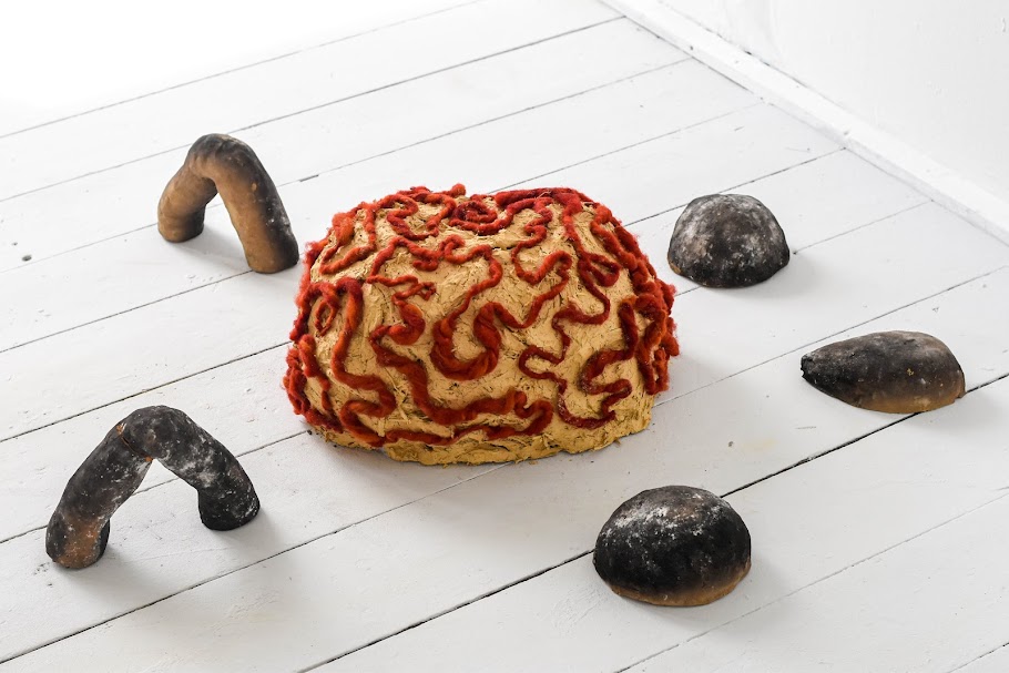The materials and traditional techniques I use, consisting of cob and wool, have their historical gendered stereotypes- ‘men build, women weave’, so, I intertwine them. These stereotypes and gender binaries should be broken and as we are all woven and interconnected, societal oppressions are also intertwined.