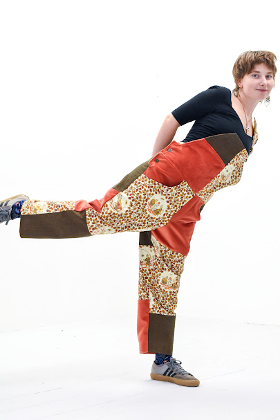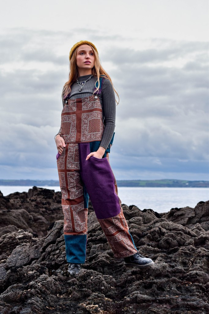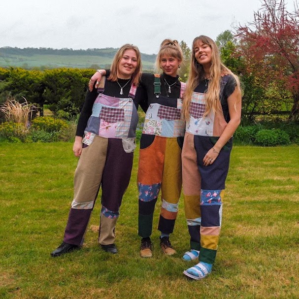 My mum was a textile artist and I have grown up sewing and experimenting with textiles. I made my first pair out of some scrap fabric my Grandma gave me, which her mum gave her. My Grandma used this fabric to make clothes for my mum and her siblings. This pair of dungarees is now so special to me and many people commented on them so I decided to make some for other people. This include making some pairs for my sisters out of scraps of our baby clothes.