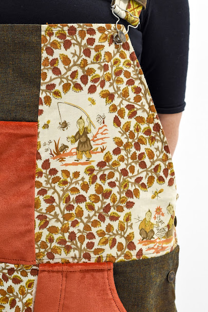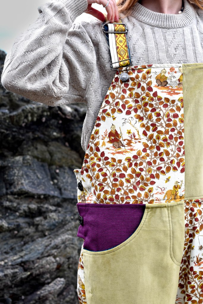 Alongside many other sewing projects, I make dungarees out of scraps of fabric and old curtains, often in patchwork designs.
