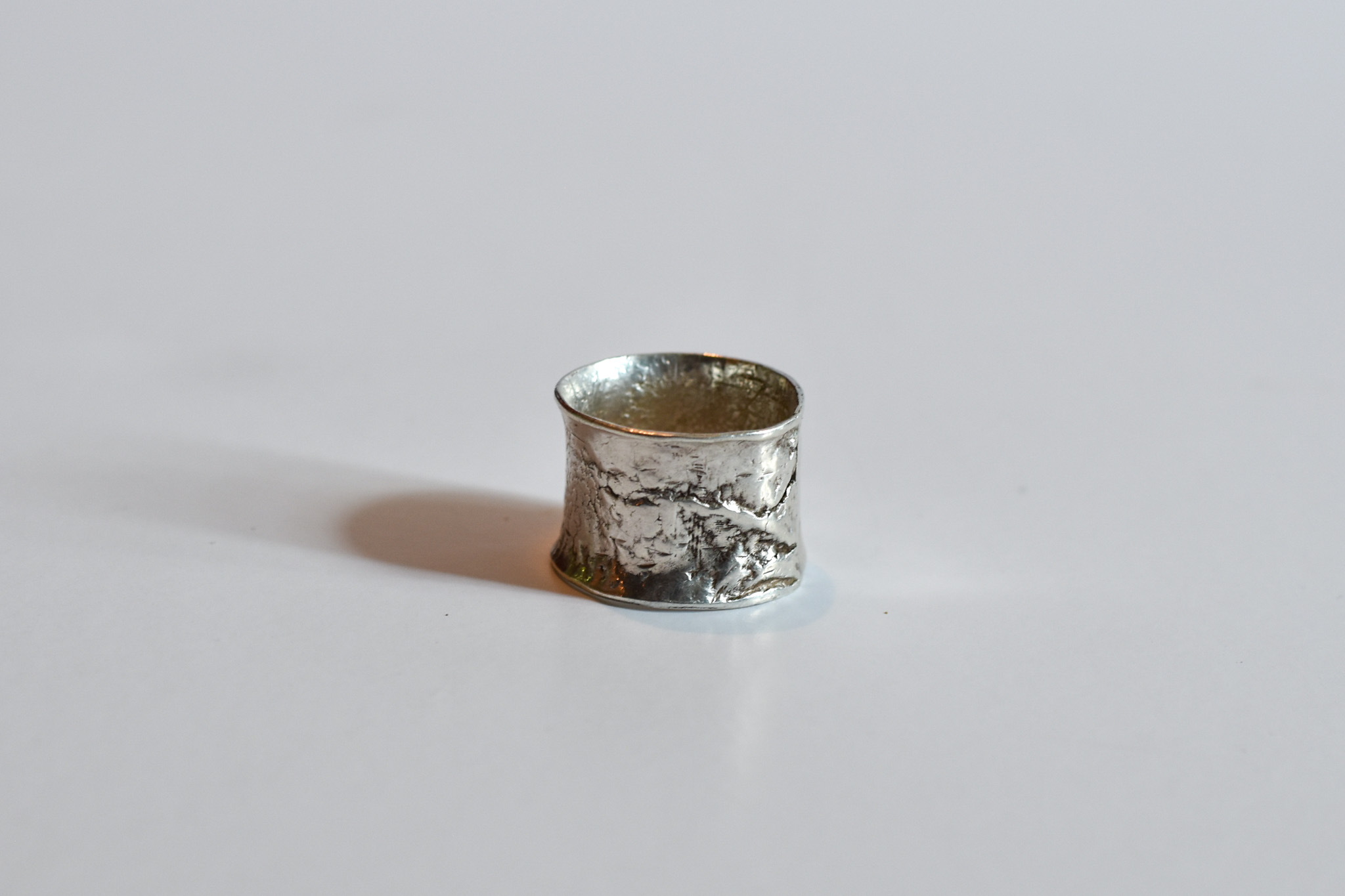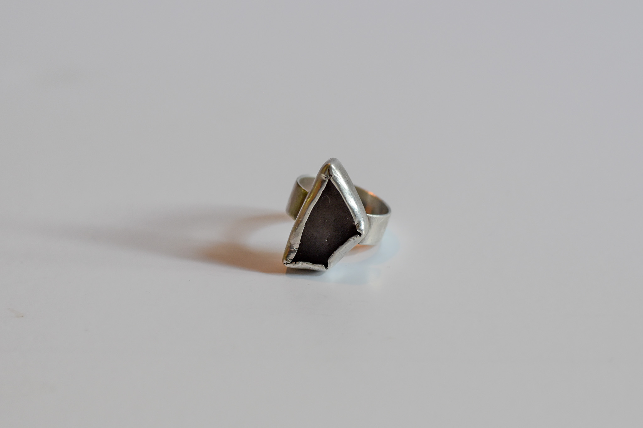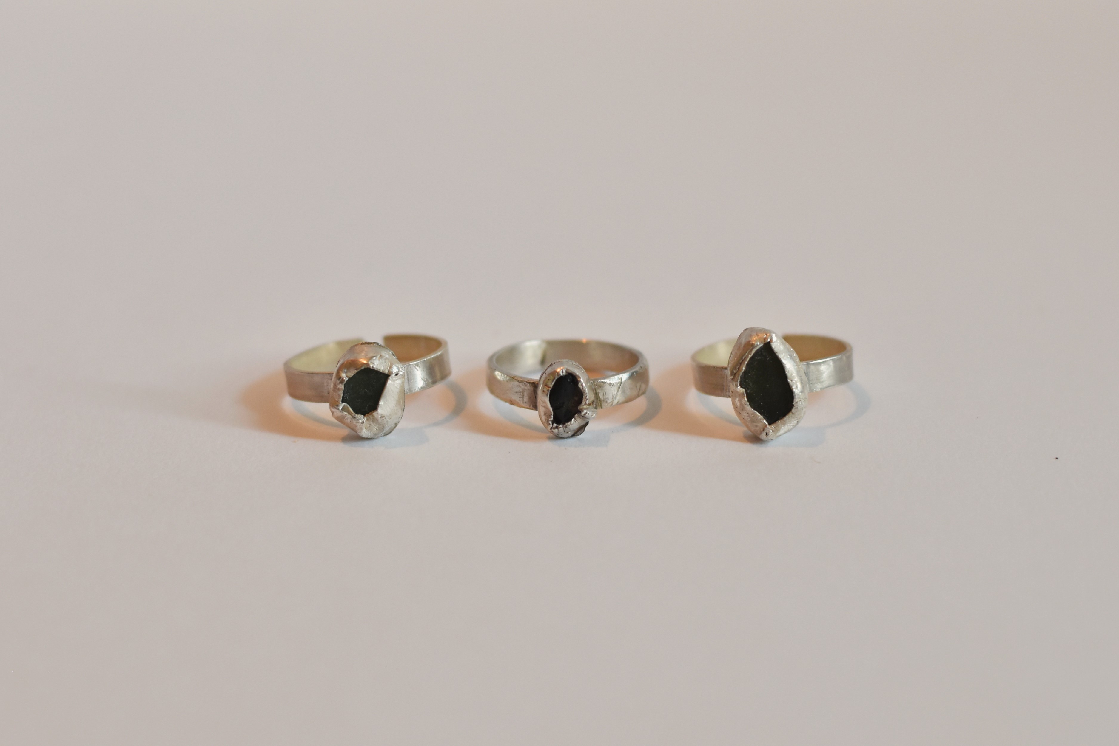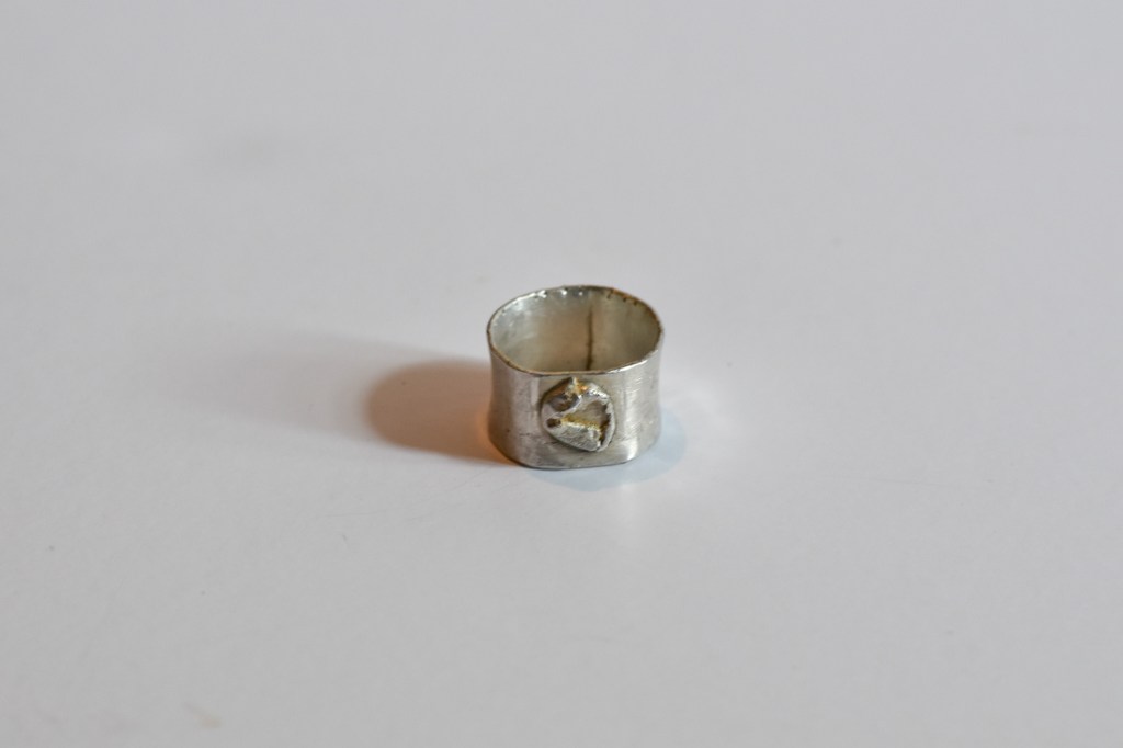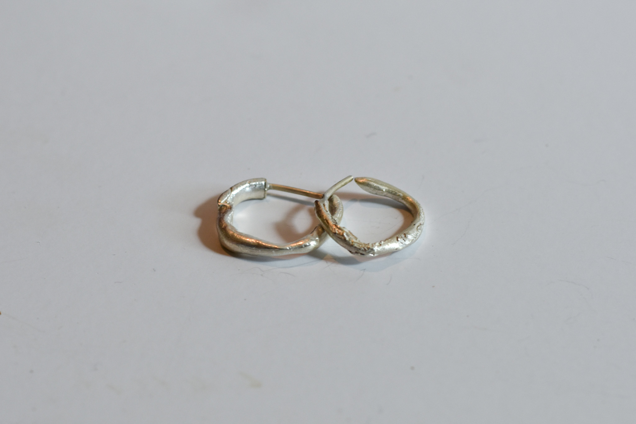 I like to experiment making pieces of jewellery out of silver. I have made pieces with sea glass and also experiment with silver clay. I love the organic forms caused by melting, hammering and bending the metal. I am inspired rocky, rugged, organic textures. I also have experimented combining silver with foraged clay and pit firing it to create some ceramic pieces.