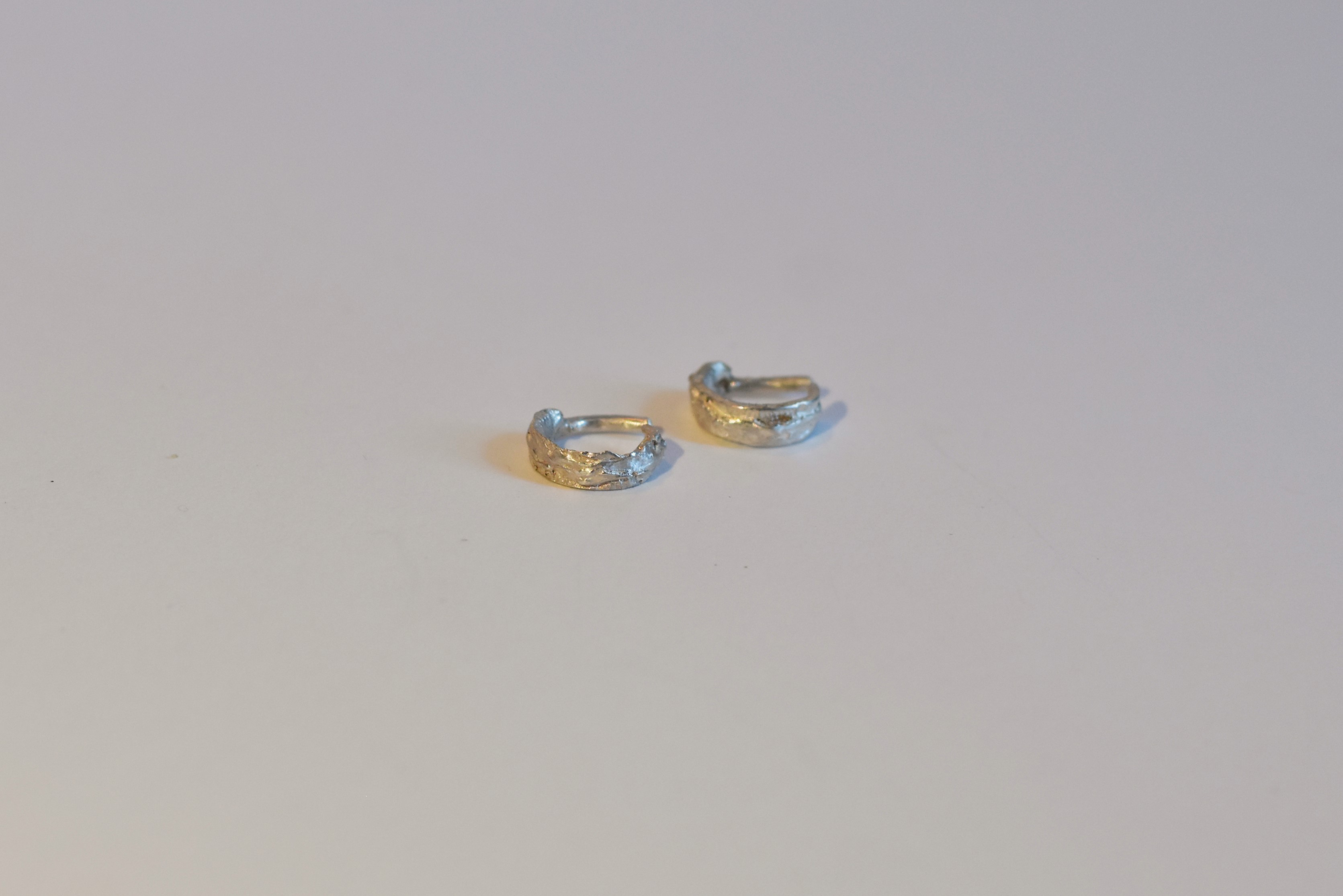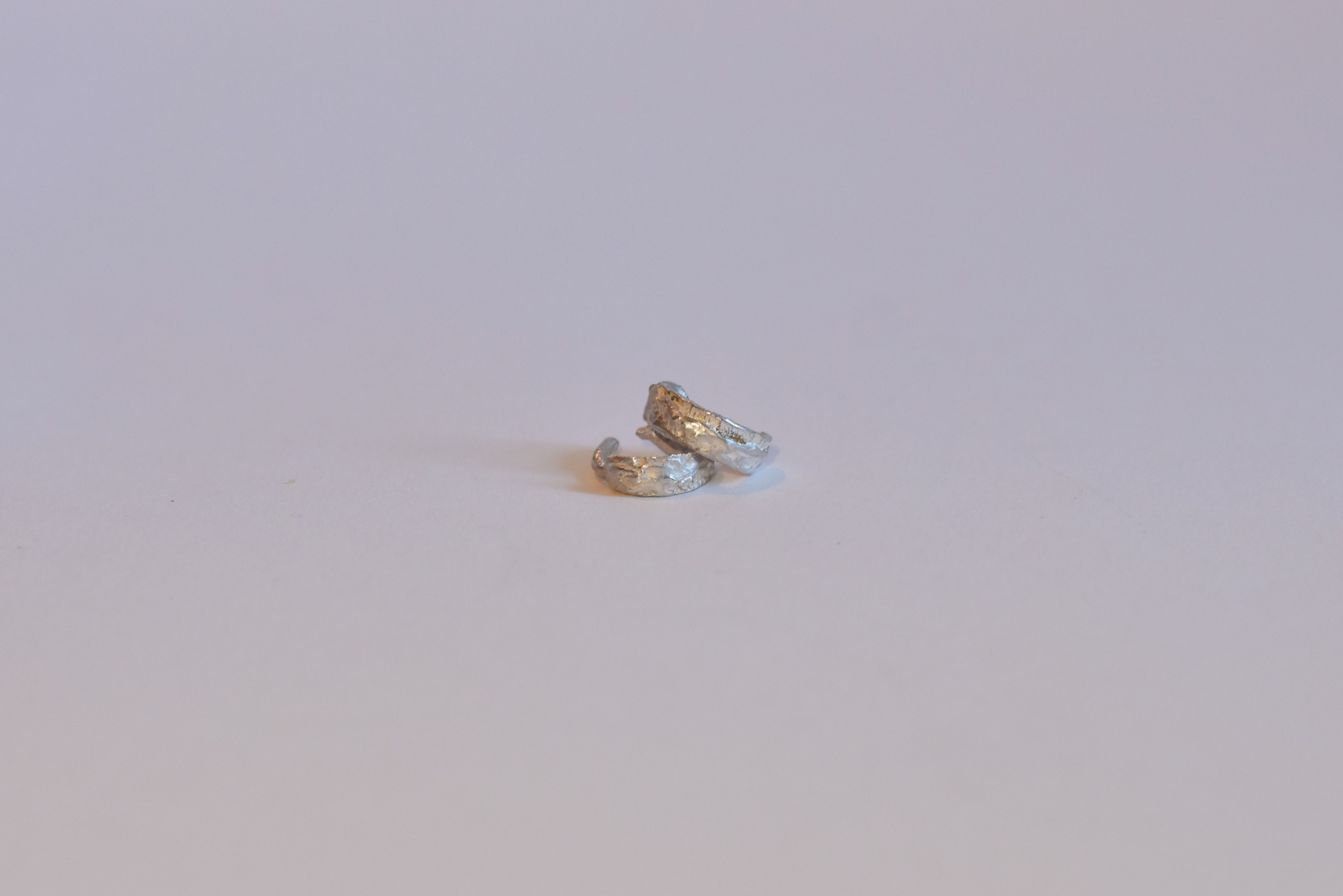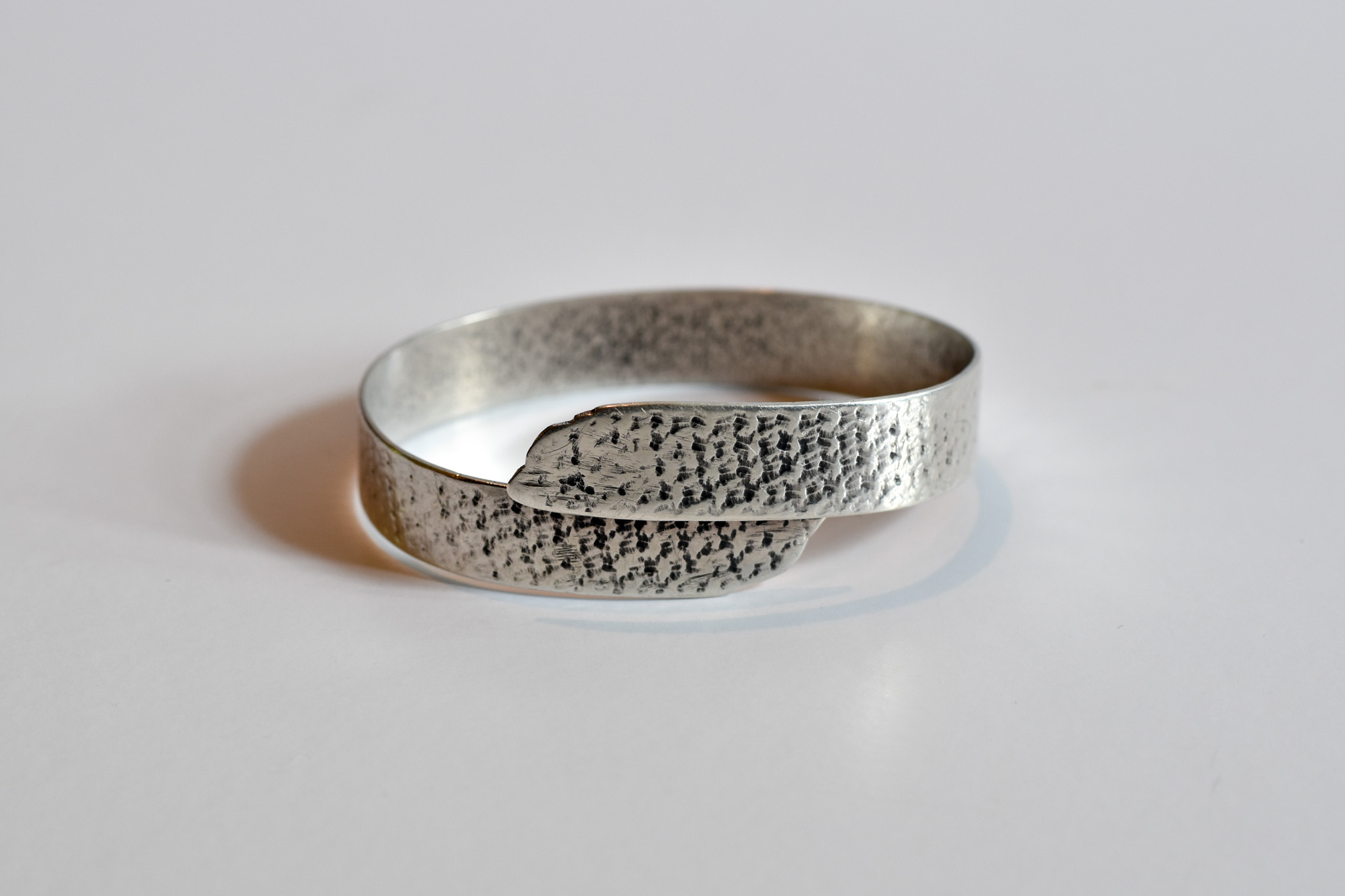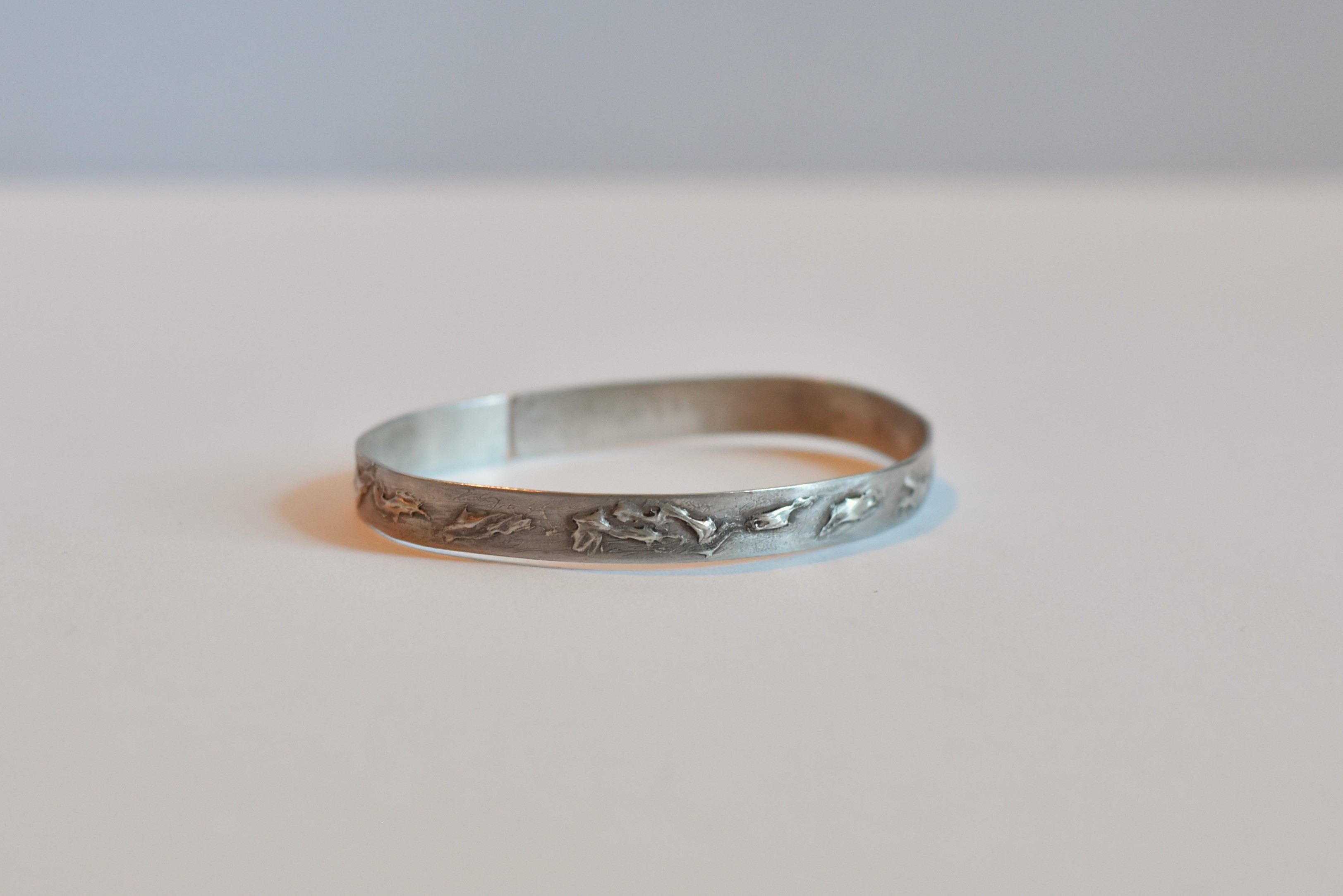I like to experiment making pieces of jewellery out of silver. I have made pieces with sea glass and also experiment with silver clay. I love the organic forms caused by melting, hammering and bending the metal. I am inspired rocky, rugged, organic textures. I also have experimented combining silver with foraged clay and pit firing it to create some ceramic pieces.